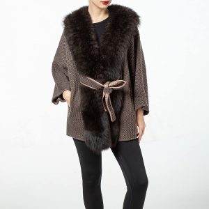 This beige cable knit sweater is a unique blend of classic comfort and contemporary style. Featuring chunky, textured knitting and soft, feathery fur accents along one side and the sleeves, it offers both warmth and eye-catching appeal. The relaxed fit and round neckline ensure all-day comfort, while the contrasting textures create a chic, fashion-forward look.