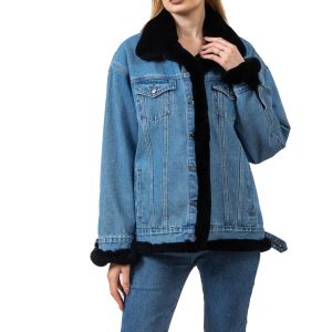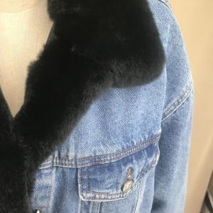 This denim jacket is elevated with plush black fur trim, blending laid-back style with luxurious comfort. The classic blue denim provides a timeless, versatile base, while the soft black ...