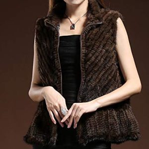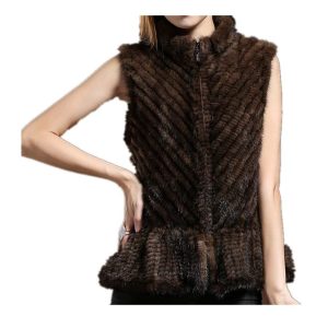 This brown fur vest showcases a distinctive chevron pattern that adds dimension and a touch of luxury to your look. The fitted silhouette is enhanced with a subtle peplum ...