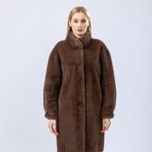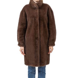 Wrap yourself in warmth and timeless style with this classic brown faux fur coat. Designed with a minimalist silhouette, this coat features a soft, plush texture and a high ...