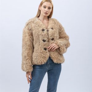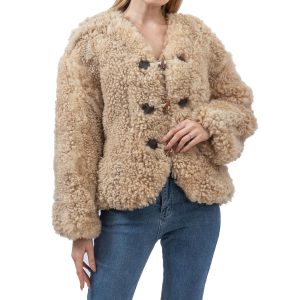 Stay warm in style with this natural lambswool double-breasted jacket, designed for comfort and a touch of vintage-inspired flair. The plush, curly texture creates a cozy and inviting look, ...