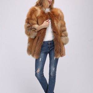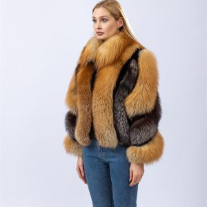 Showcase your unique style with this stunning jacket crafted from natural red and silver fox fur. The vivid blend of warm golden-red and cool silvery tones creates a rich, ...