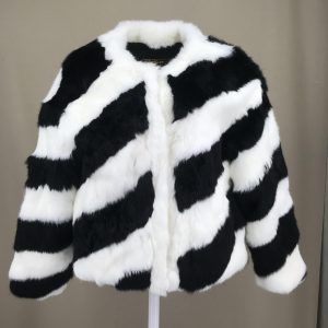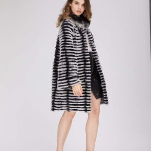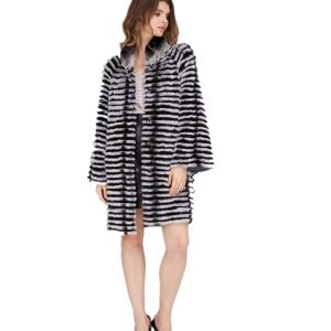 This black and white striped fur coat delivers bold, modern style with its unique horizontal pattern and soft, voluminous texture. The relaxed fit and full-length sleeves ensure a comfortable, ...