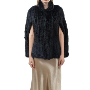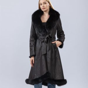 Make a statement with this luxurious black coat adorned with lavish silver fox fur trim. The bold, voluminous fur collar, front placket, and tiered cuffs create a show-stopping silhouette, ...