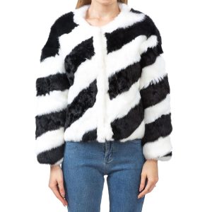 Stand out from the crowd with this black and white striped faux fur jacket, designed to bring a touch of playful drama to your cold-weather wardrobe. The striking diagonal ...