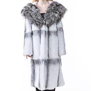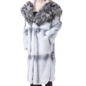 Embrace winter elegance with this stunning white fur coat, featuring a striking oversized silver fur collar. The coat’s soft, snowy base is accented with subtle silvery-gray shading, creating depth ...